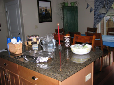 Here is a picture of our candles lighting our dim kitchen for our supper. My favorite dessert was the chocolate triffle with gummy worms. So perfect for Ethan!